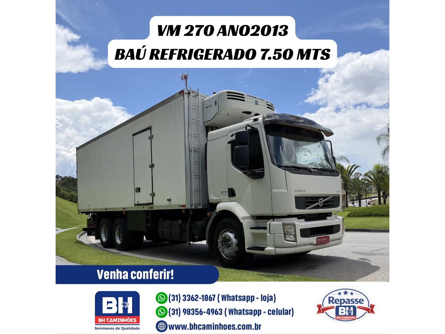 VM 270 Leito ano 2013 equipado com Baú refrigerado de 7.50 mts de comprimento, piso canaletado, porta lateral, divisória móvel, porta traseira tripartida, máquina MD 300 Diesel/Eletrica, caixa HC, diferencial revisado, mecânica e estrutura excelente, pneus traseiros reformados com aproximadamente 60 % de borracha.