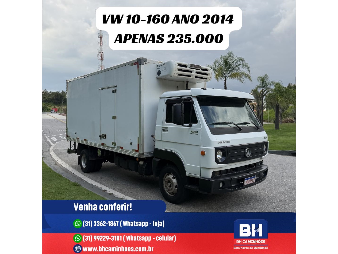 VW 10-160 ADVANTEC ano 2014 apenas 235.000 km rodados baú refrigerado de 5.15 MTS de comprimento, piso canaletado, porta lateral, caixa Labonia, máquina Rodofrio RD 44AS Acoplada. NO REPASSE NO ESTADO QUE SE ENCONTRA SEM GARANTIA. R$ 196.800,00 NO CHASSI.